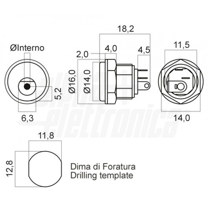 Diametro Interno 2,1 mm   Montaggio connettore pannello