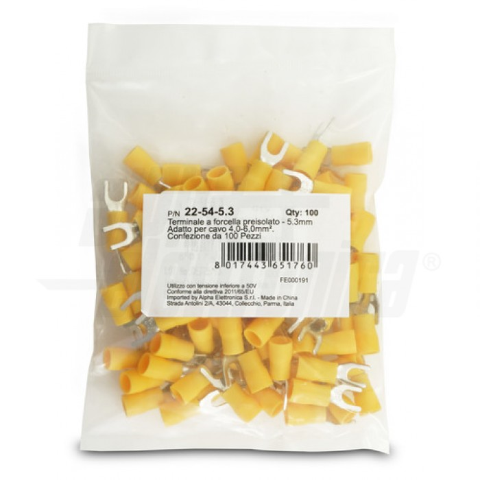 Terminale a forcella preisolato - 5,3mm - Adatto per cavo 4,0-6,0mm²