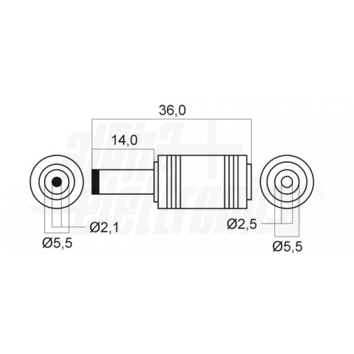 Adattatore da presa DC ø5,5-2,5 a spina DC ø5,5-2,1mm