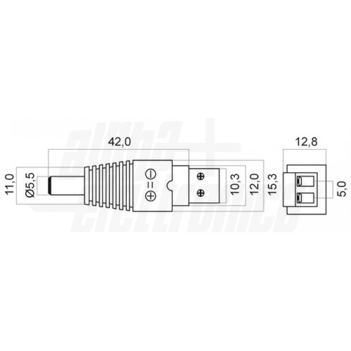 Adattatore da spina DC ø5,5-2,5mm a morsetto ad innesto