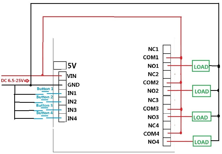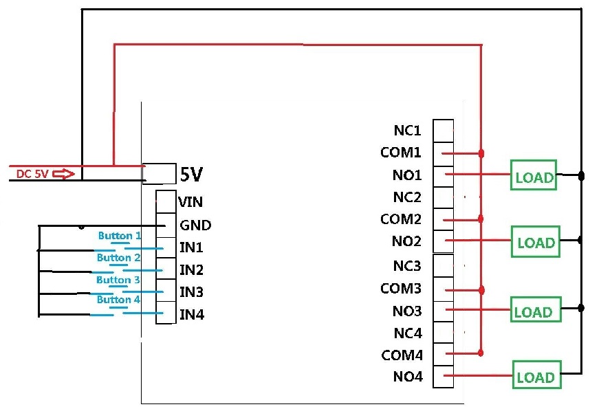 Relè a 4 canali, ogni canale indipendentemente, non interferiscono tra loro.