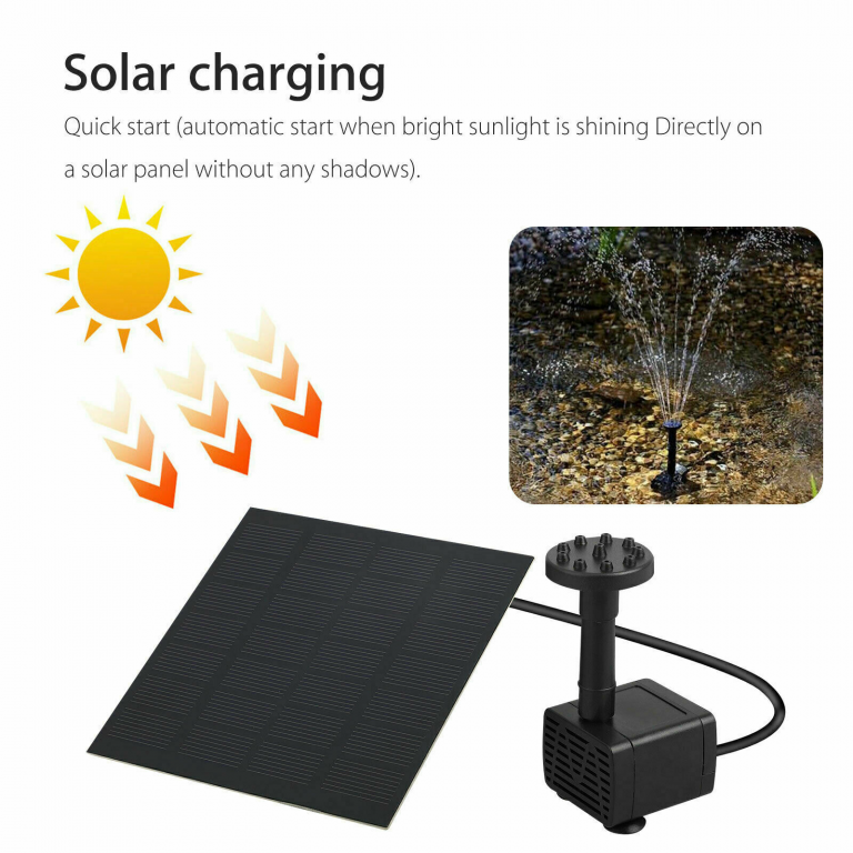 Prodotto ad azionamento diretto senza batteria aggiuntiva. L'altezza del getto d'acqua dipende interamente dall'intensità della luce solare. Quando la luce del sole è debole, la pompa non funzionerà continuamente, ma si avvierà automaticamente ripetutamente fino a quando la luce del sole raggiunge una certa intensità. L'ombra influenza il normale funzionamento della pompa.