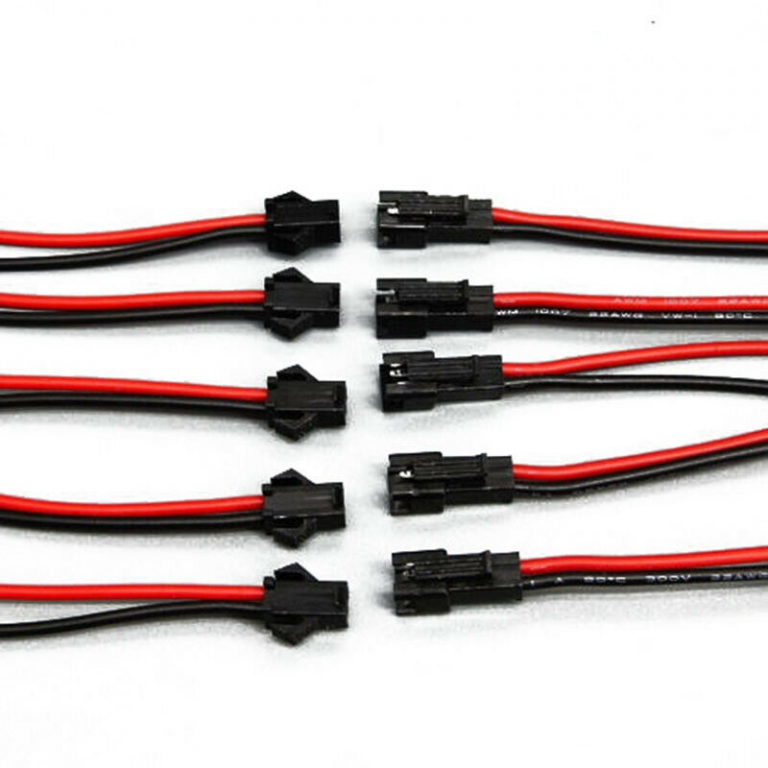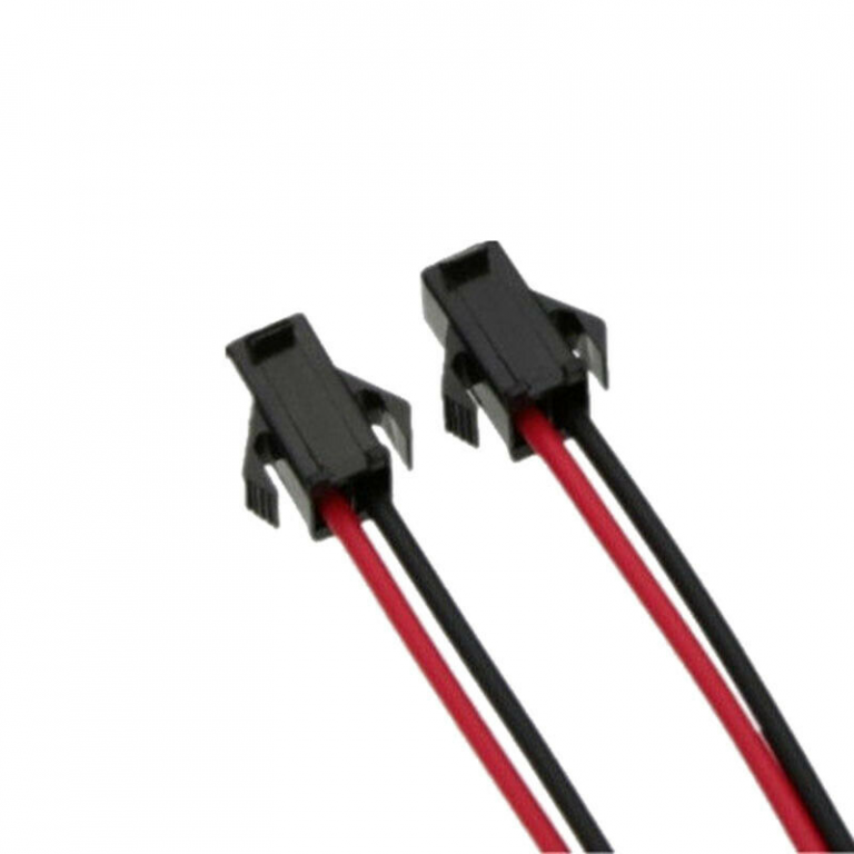 Connettore standard JST SM 2 pin con passo 2,5mm, corredato di 2 cavetti: rosso e nero 22AWG lungo 100mm