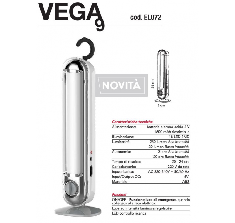 CFG VEGA9 LAMPADA LED DI EMERGENZA E TORCIA 250LM CON DIMMER IP20