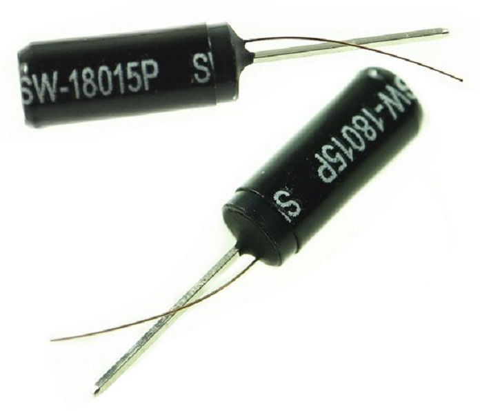 Piccolo sensore in grado di rilevare le piccole sollecitazioni meccaniche come urti e vibrazioni del sistema su cui viene installato grazie a una piccola molla presente al suo interno. Si può installare in qualsiasi posizione mantenendo lo stato di “OFF” e quindi di circuito aperto. Quando il sensore viene agitato, urtato, o sottoposto a forza centrifuga: i due contatti, la molla e un reoforo posto al suo interno, entrano in collisione tra loro cortocircuitandosi e quindi chiudendo il circuito. Viene largamente utilizzato in giocattoli, piccole applicazioni domestiche, sistemi di rilevazione e antifurto ma anche in smart-car e robot-car.