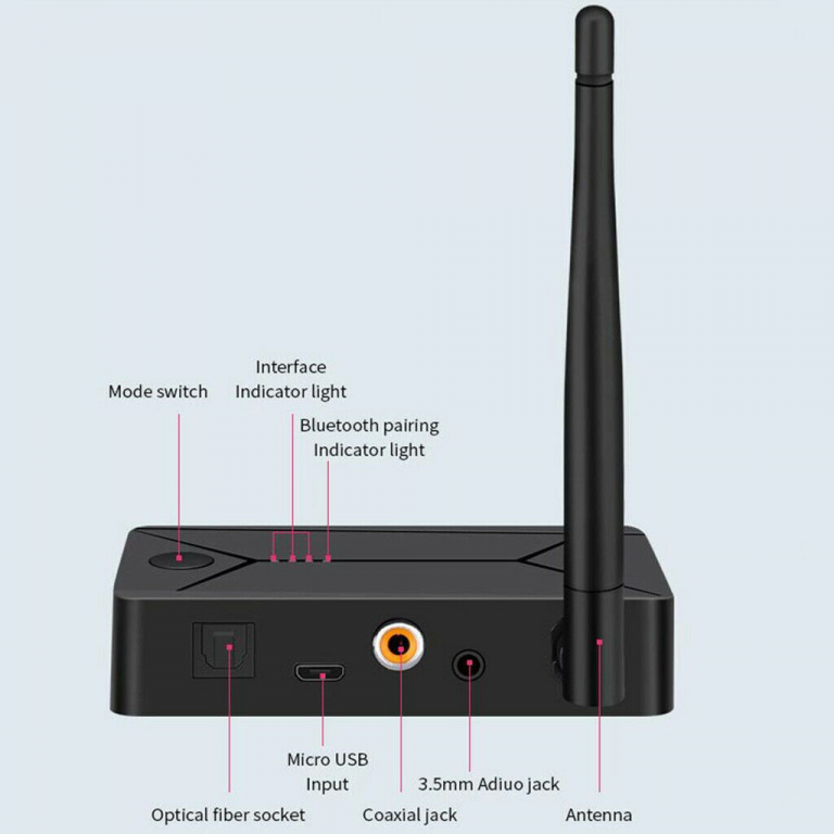 Può trasferire musica da telefoni cellulari, da mp3, TV, computer e altri dispositivi ad un ricevitore Bluetooth, come auricolari Bluetooth stereo, altoparlanti Bluetooth, amplificatori e altri dispositivi.