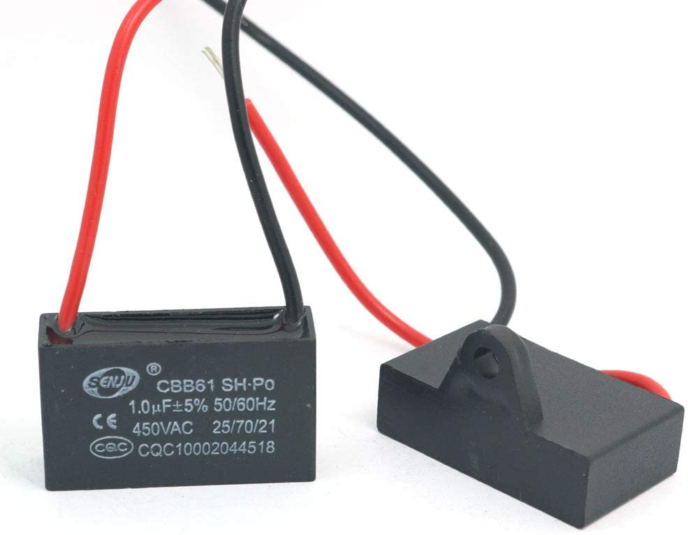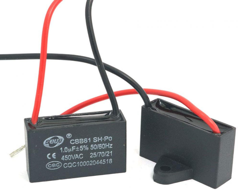 CONDENSATORE DI SPUNTO 1UF 450VACAdatto per ventilatori, condizionatori ed elettrodomestici vari in corrente alternata fino a 450VAC