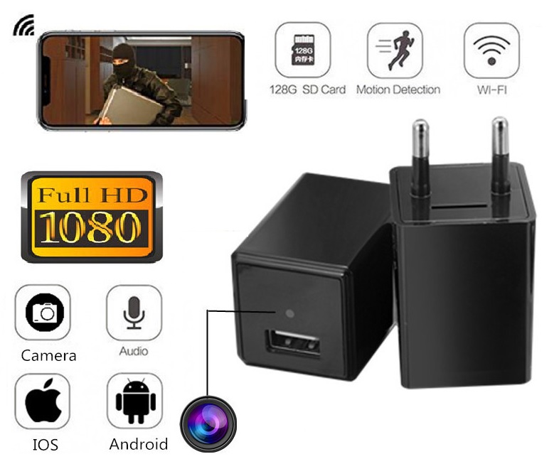 CARICABATTERIE USB DA MURO CON TELECAMERA NASCOSTA HD 1080p WIFI Rilevamento di movimento