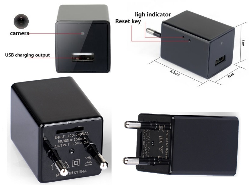 Videocamera di sicurezza compatta e discreta, in un piccolo caricatore USB che carica i tuoi dispositivi portatili mentre registra video Full HD con un obiettivo di alta qualità e con un angolo di visione da 140°. Sembra proprio un normale caricatore da muro, nessuno penserà che è una potente fotocamera e non è rilevabile da nessuno scanner. Risoluzione video Full HD 1920x1080P che ti offre una visione chiara e nitida in tutti i dettagli.
