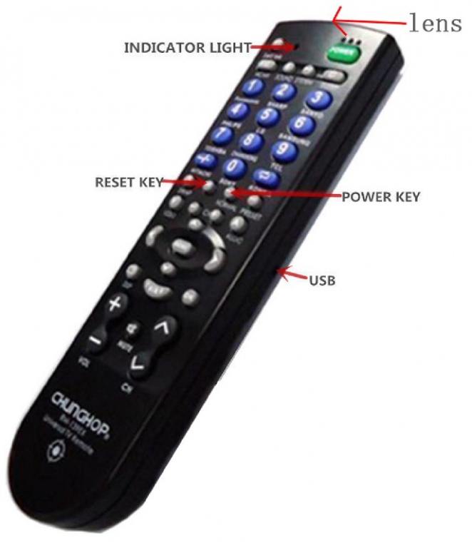 Nota: anche se è un vero telecomando universale, viene venduto come Spy-Cam e non come telecomando. Il solo scopo di questo prodotto è quello di poter posizionare una telecamera dove un telecomando TV non genera sospetto o curiosità e viene completamente ignorato. Non desta mai sospetti e produce registrazioni video full HD.