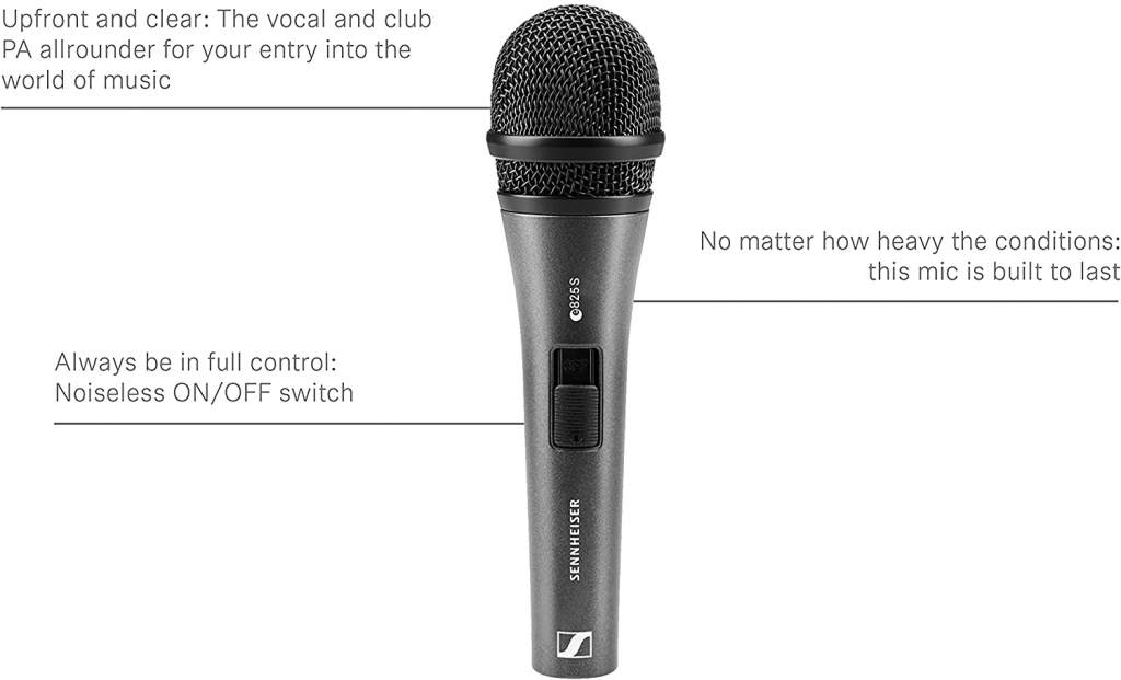 - Con il suono morbido del microfono Sennheiser e825S, la sorprendente chiarezza e la estesa risposta alle alte frequenze, la tua voce avrà un nuovo carattere