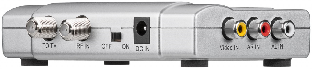 • commuta segnali immagine e audio (stereo) di registratori DVD, fotocamere digitali in segnali ad alta frequenza (VHF/UHF)