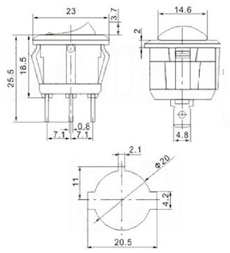 INTERRUTTORE  LUMINOSO TONDO SPST A BILANCIERE 3 CONTATTI