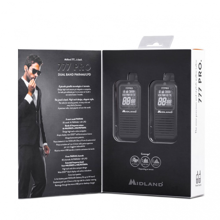 MIDLAND 777 PRO COPPIA RICETRASMITTENTI PMR 446.00625 – 446.19375MHz DIMENSIONI RIDOTTE