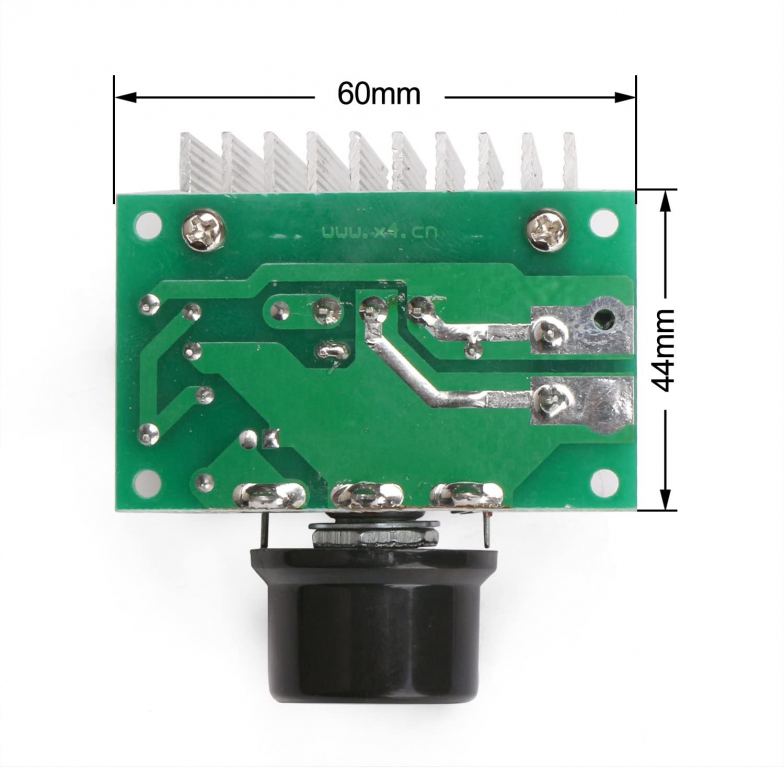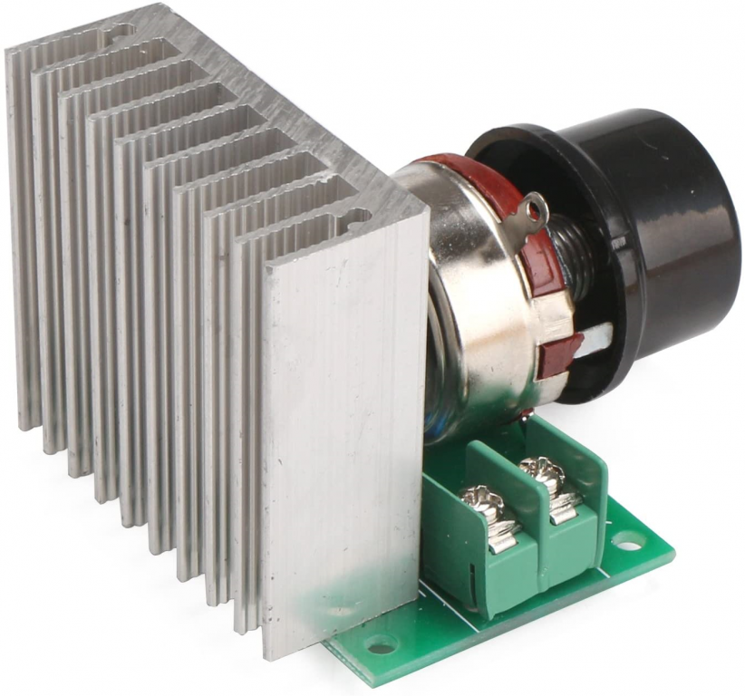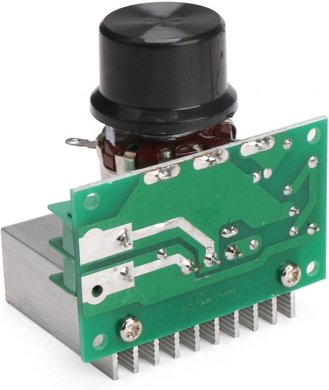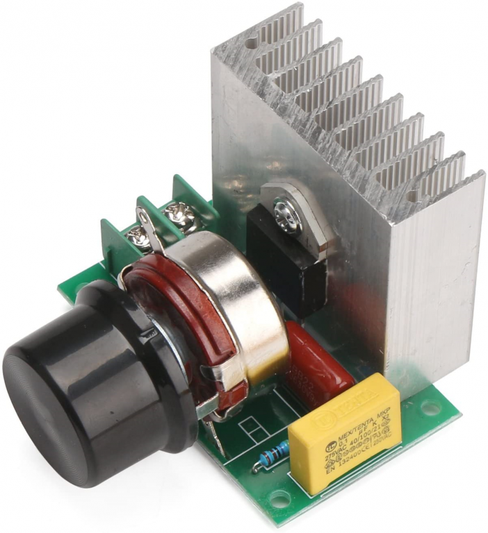 Modulo regolatore di velocità per motori elettrici 50-220Vac, può regolare anche la luminosità di fari a filamento fino a 3.8KW. (Dimmer). IL CARICO DEVE ESSERE COLLEGATO PRIMA DI PROCEDERE CON LA REGOLAZIONE. Questo dispositivo viene utilizzato prevalentemente con carichi resistivi come lampade ad incandescenza, Forno elettrico, scaldabagno, ferro da stiro, caloriferi con resistenze a filo, ecc. Funziona anche con molti tipi di motore in alternata, monofase. Ma per alcuni motori (solo una minoranza) non è garantito un funzionamento ottimale.