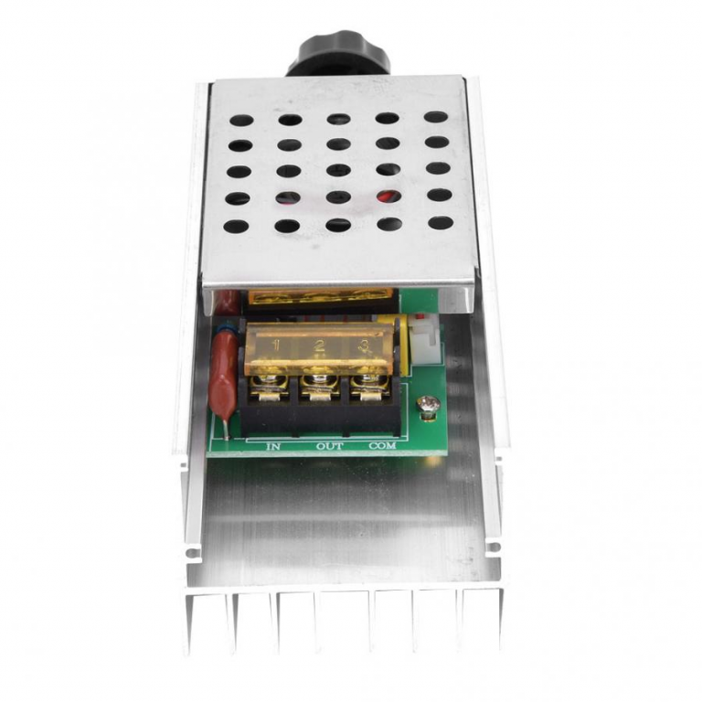 Modulo regolatore di velocità per motori elettrici 10-220Vac, può regolare anche la luminosità di fari a filamento fino a 10KW. (Dimmer). IL CARICO DEVE ESSERE COLLEGATO PRIMA DI PROCEDERE CON LA REGOLAZIONE. Questo dispositivo viene utilizzato prevalentemente con carichi resistivi come lampade ad incandescenza, Forno elettrico, scaldabagno, ferro da stiro, caloriferi con resistenze a filo, ecc. In caso di carichi induttivi come motori, elettrocalamite ecc si deve considerare una potenza in uscita di circa 1/3 rispetto al carico resistivo. Funziona con quasi tutti ii tipi di motore in alternata, monofase. Ma per alcuni motori (solo una minoranza) non è garantito un funzionamento ottimale.