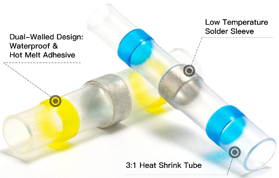 Connessione durevole: durante il calore, la guaina termorestringente si riduce di dimensioni, la saldatura si scioglie e fluisce gradualmente attraverso i fili spellati, garantendo una forte tenuta. Il filo non scivolerà mai fuori dal connettore garantendo una saldatura sicura e resistente alle intemperie.