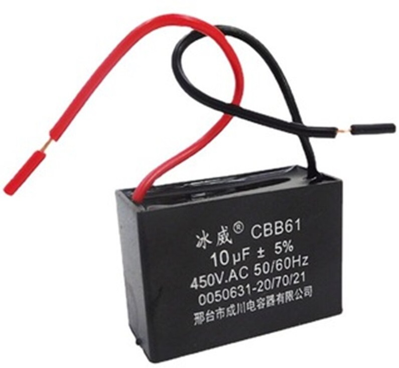 CONDENSATORE DI SPUNTO 10UF 450V RETTANGOLARE TERMINALI A FILO