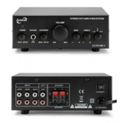 Mini amplificatore Hi-Fi CS-PA1 MK II Dynavox nero. Il piccolo amplificatore Hi-Fi con un gran numero di funzioni. Un alimentatore per il settore informatico, come secondo dispositivo, o come piccolo amplificatore per uso mobile. Nella sua ultima edizione, il CS-PA1 MK II è ora disponibile in un alloggiamento interamente in metallo, controllo degli alti e dei bassi, circuito del volume commutabile, un controllo di standby automatico ( può essere disattivato ) e notevolmente più potenza. Dati tecnici: Gamma di frequenza: 20 Hz-20 kHz (± 3 dB); Potenza: 60 W (PMPO), 30 W (musica); Distorsione armonica totale: 0,3% (1 kHz / 1 W); Sensibilità in ingresso: 220 mV (1 kHz / THD 1%); Rapporto segnale/rumore: 75 dB; Impedenza: 4 - 8 ohm; Ingressi: 3 x ingressi di linea (RCA/Cinch); Uscite: uscita di linea (non regolata), connessione per cuffie (jack da 6,3 mm.); Tensione di esercizio: 230 V / 50 Hz; Colore nero; Dimensioni: circa 180 x 145 x 70 mm.; Peso 1,6 Kg. ( Ex BN 201431 ).