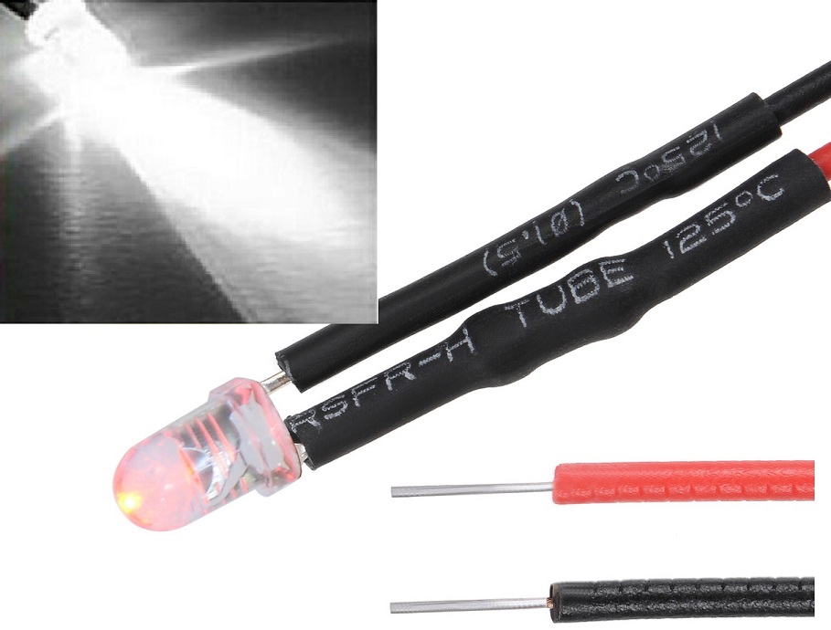Diodo LED super luminoso con resistori precablati con fili da 20 cm integrati - funzionanti a 9-12Vdc. Entrambi i fili sono avvolti insieme al LED creando un assemblaggio sicuro ed affidabile.