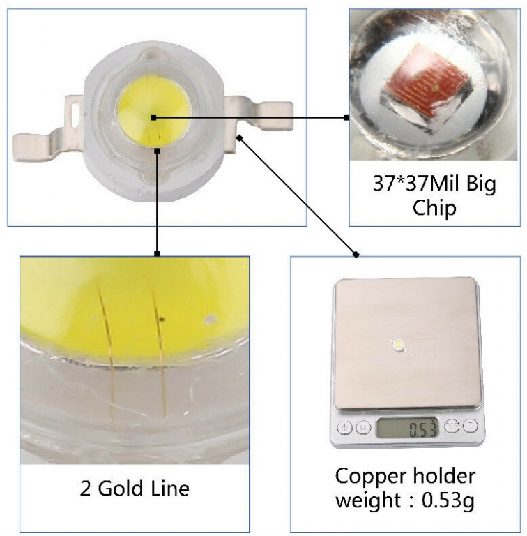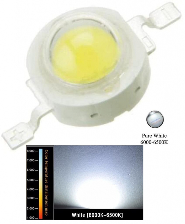 LED DI POTENZA 5W BIANCO 6000-6500k DC 6,0-7,0V 700mA 500-600LM NO PCB