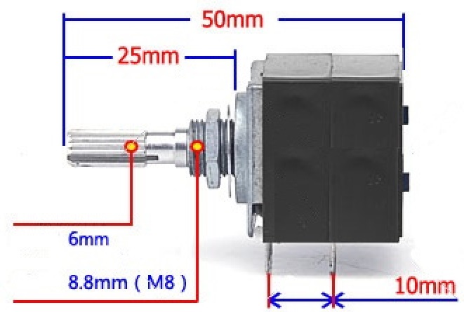 POTENZIOMETRO 100K LOG. STEREO 8 PIN RH2702