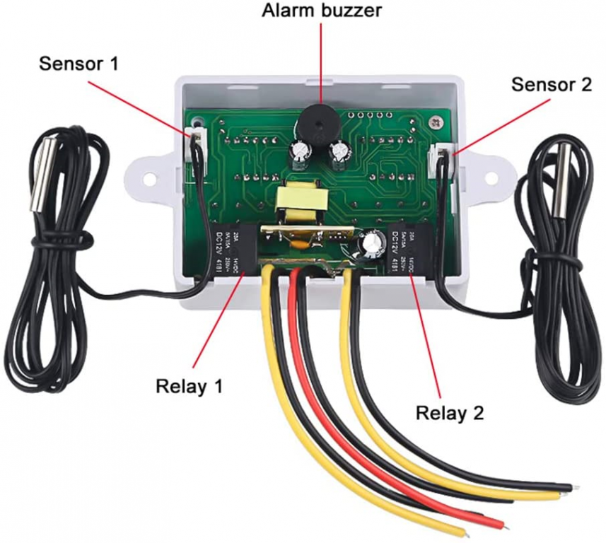 DOPPIO TERMOSTATO DIGITALE A DUE RELÈ CON 2 SONDE ESTERNE 12Vdc