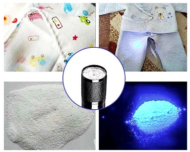 La torcia elettrica UV è utilizzata per rilevare se ci sono oggetti quotidiani contenenti agenti fluorescenti, in particolare prodotti per la pulizia, cosmetici, carta igienica, assorbenti o pannolini, ma anche urina per animali domestici, cane / gatto i in tappeti e mobili, aiuta a pulire rapidamente ecc.