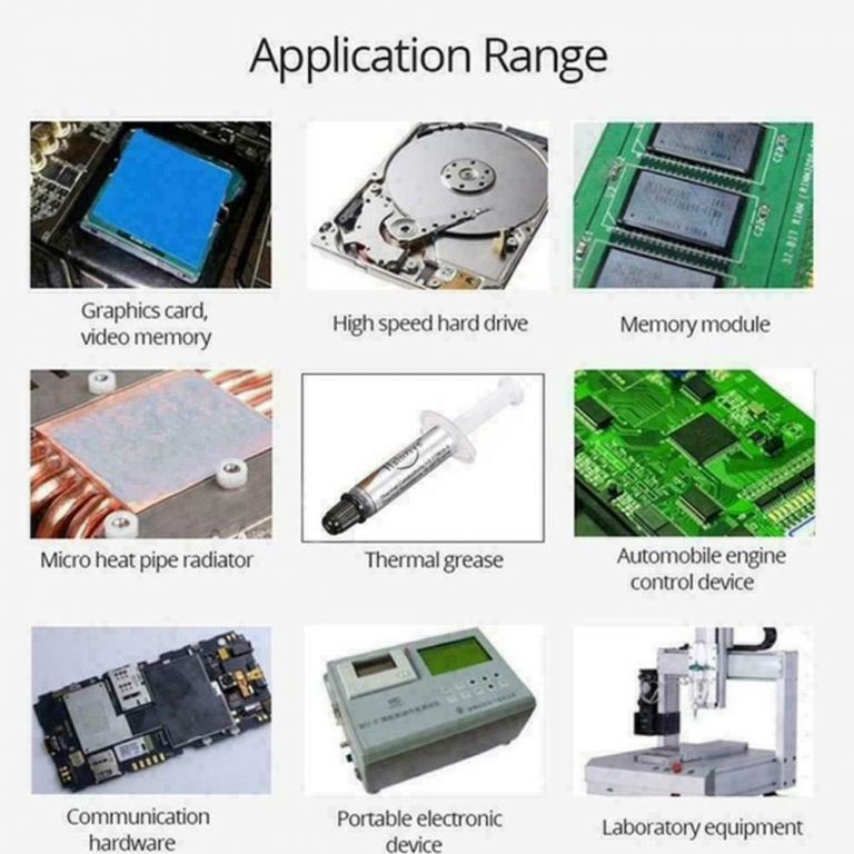 Il composto termico è necessario per creare un trasferimento affidabile di calore dal processore del computer, o di Transistor di potenza, o LED, al suo dissipatore di calore per evitare il surriscaldamento del componente. Questo grasso termico migliorerà la dissipazione del calore. Il composto a trasferimento termico migliora l'efficacia dei dispositivi di raffreddamento. Ciò garantisce che il dissipatore di calore e la ventola possano funzionare alla loro piena capacità per rimuovere il calore dannoso dalla CPU e prevenire il burnout o danni da calore.
