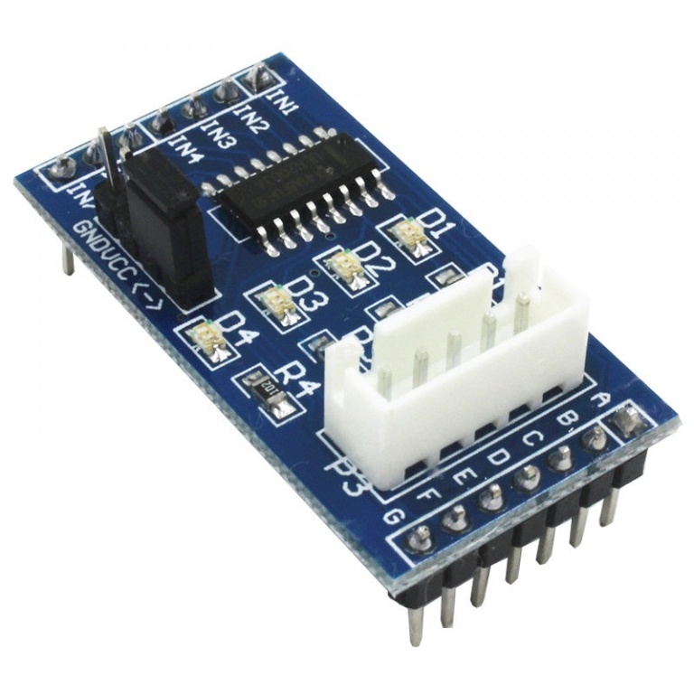 Modulo driver per motore passo-passo ULN2003 Chip Utilizzato: ULN2003A Led segnale : 4 (uno per ogni fase) Presa XH-5P, può essere collegata direttamente al motore passo-passo modello 28BYJ-48 Dimensioni scheda PCB: 40,5 x 21,3 mm