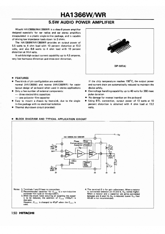 HA1366W INTEGRATO Amplificatore di potenza audio da 5,5W HITACHI