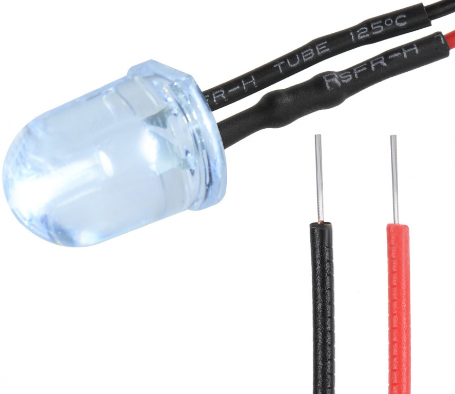 Diodo LED super luminoso con resistori precablati con fili da 20 cm integrati - funzionanti a 9-12Vdc. Entrambi i fili sono avvolti insieme al LED creando un assemblaggio sicuro ed affidabile.
