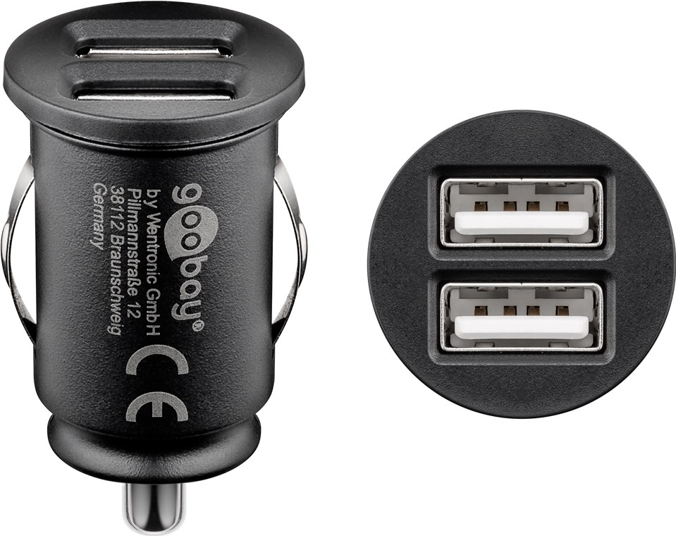 Caricabatteria per auto doppio USB (2xUSB) ACCENDISIGARI 24W massimo 4,8A (12/24V) GOOBAY