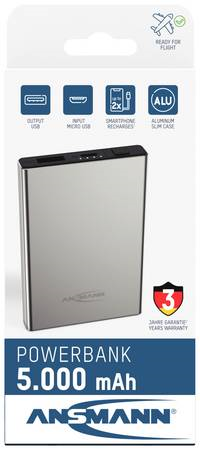 ANSMANN POWERBANK SILVER 5000mAh 18,5Wh 2XUSB 2,1A READY FOR FLIGHT