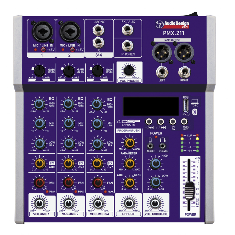 I nuovi  “PMX”  presentano preamplificatori ad alte prestazioni sui canali microfonici, un ampliamento degli effetti digitali e nuovo gruppo USB/BT con Class-compliant USB per il supporto plug-and-play su Mac, PC, Smartphone.