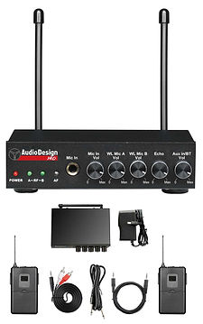 AUDIODESIGN DOPPIO SISTEMA BODYPACK UHF PER RADIOMICROFONI (OPZIONALI) CON MIXER INCORPORATO