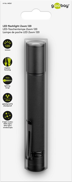 - 3 modalità di illuminazione: 100% di luce, 50% di luce e stroboscopica, regolabili anche premendo leggermente il pulsante