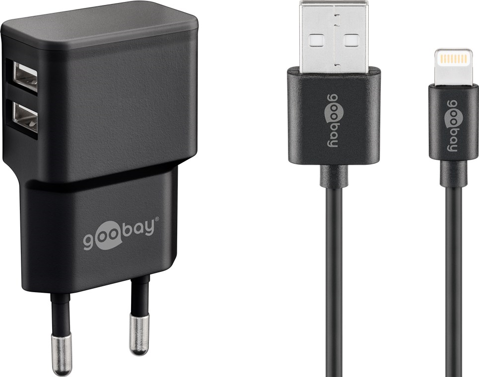 alimentatore con 2 prese USB e cavo di Apple lightning 1m (nero)
