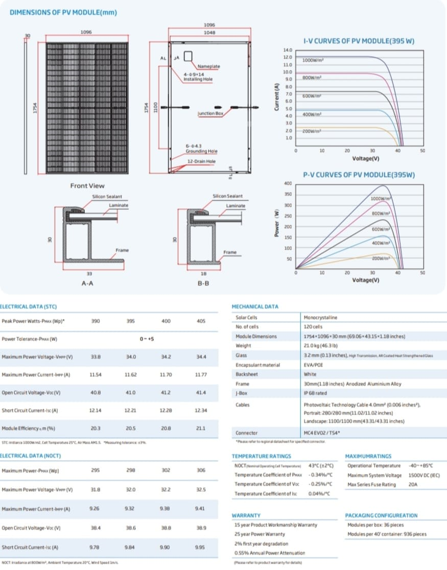 PANNELLO SOLARE FOTOVOLTAICO MONOCRISTALLINO 405W 22,6V 175x110x30