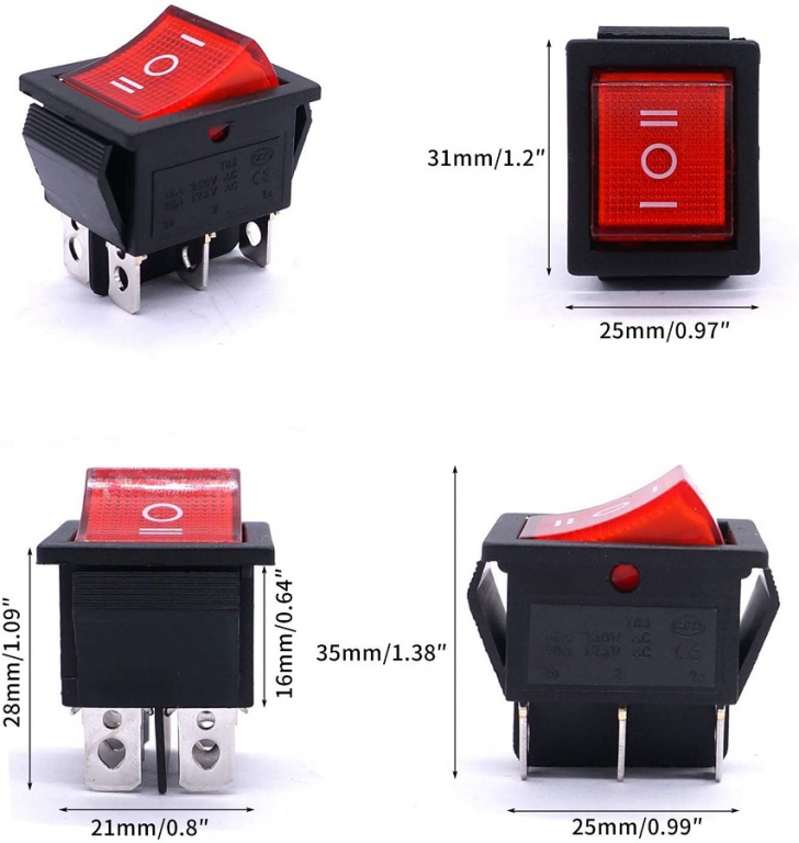 • Terminali: 6 pin (3 posizioni ON / OFF / ON)