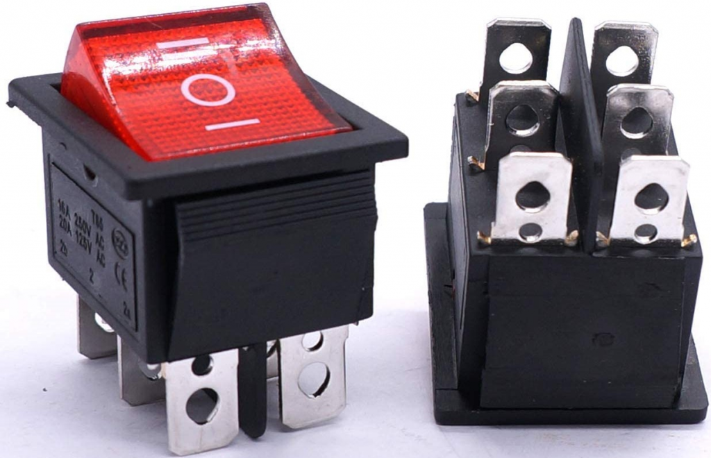 INTERRUTTORE DEVIATORE BIPOLARE A BILANCIERE LUMINOSO DPDT ON/OFF/ON 6 Pin 3 Posizioni 6A 250V 10A 125V