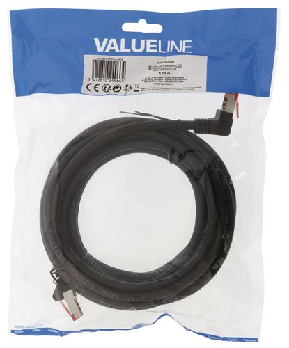 CAVO LAN CAT6 SF/UTP RJ45 DRITTO RJ45 ANGOLATO 90° 5MT NERO