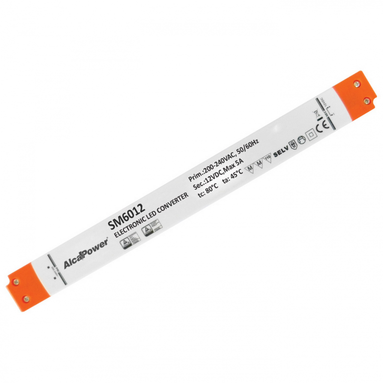 Alimentatore LED DRIVER 12VDC 60W 5A IP20 FORMATO LUNGO SLIM