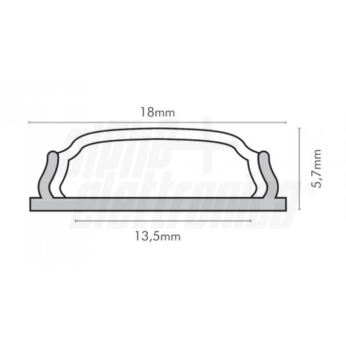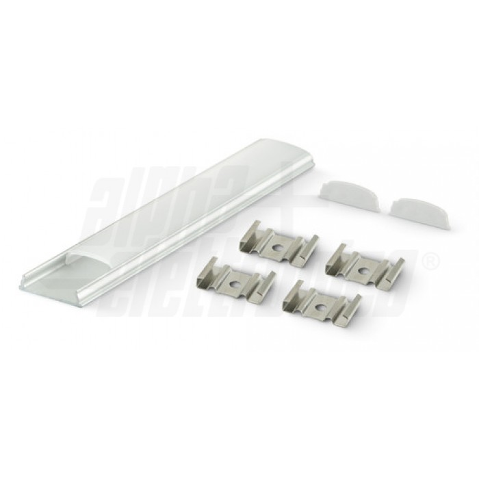 Il profilo illustrato è un componente. Il suo corretto funzionamento con nastri led o moduli led dipende da importanti requisiti di installazione e dimensionamento. La potenza dissipabile è stata calcolata considerando una temperatura ambiente non superiore a 35°C in aria. Condizioni di installazione differenti devono essere opportunamente verificate da personale tecnico. Utilizzare la copertura solo con nastri led IP20.