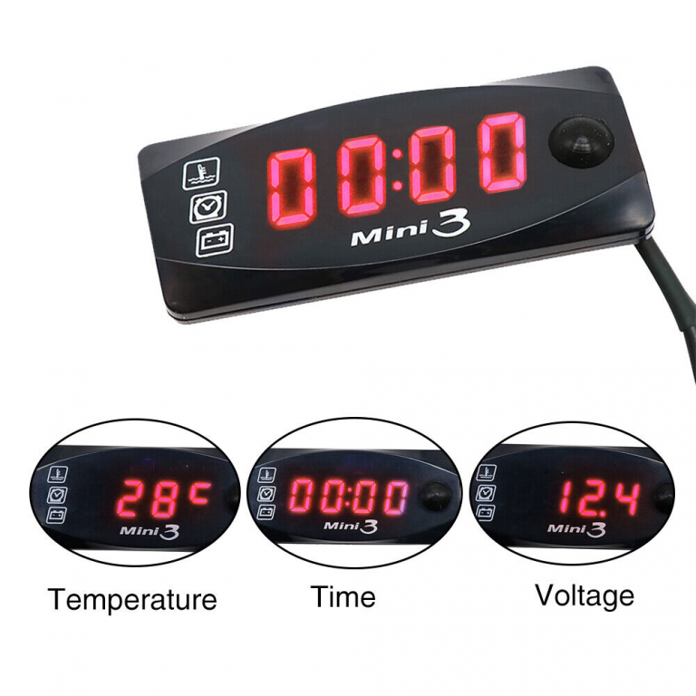 VOLTMETRO TERMOMETRO OROLOGIO PER AUTO 12VDC