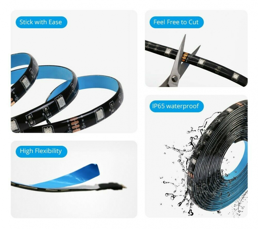 Basta toccare l'app eWeLink per scegliere il colore con la fotocamera dello smartphone per sincronizzare il colore della striscia luminosa a LED intelligente o utilizzare il controllo vocale con Google Home o Alexa per giocare con 16 milioni di colori.