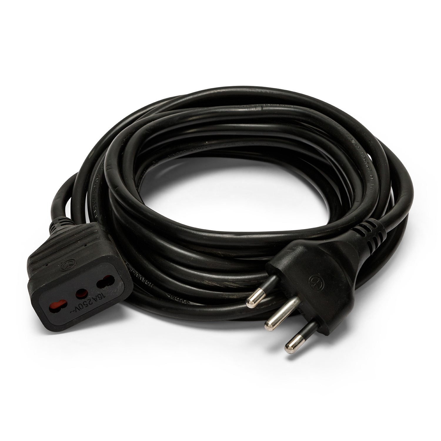 Prolunga 5 mt: Spina 16A e presa bivalente 10/16A, Nero- Sezione cavo 3G1 mm2