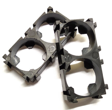 Realizzato in materiale plastico, questo particolare supporto componibile, permette di accogliere 3 batterie ricaricabili al litio tipo 18650 con terminali a saldare (non comprese, vedere prodotti correlati). Ogni supporto dispone di appositi incastri che permettono di creare supporti sempre più grandi, ottenendo pacchi batteria con la capacità e la tensione voluta. Per essere utilizzati necessitano di due pezzi identici, uno per la parte superiore e uno per la parte inferiore. Dimensioni (mm): 62x22x8,9, diametro foro centrale: 18,4 mm.