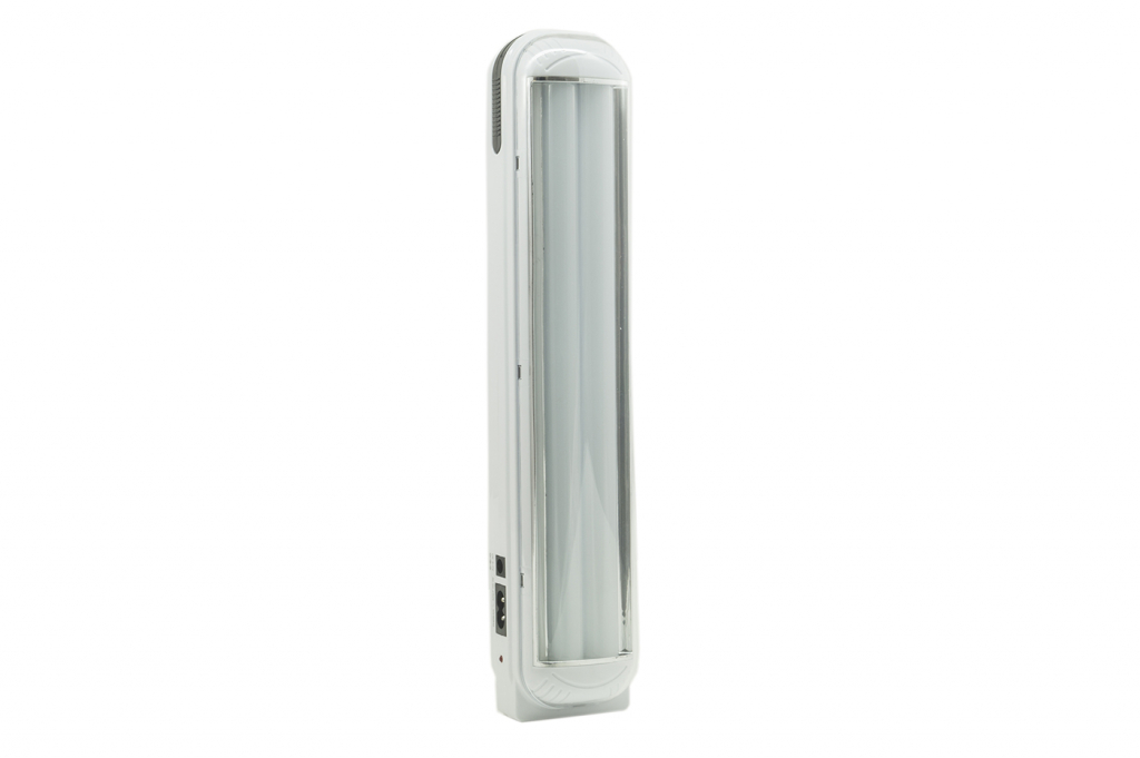 Lampada multifunzione che puo essere utile per il campeggio, come lampada di emergenza, o come torcia per illuminare gli ambienti bui o per il lavoro.Ricaricabile tramite cavo da collegare alla classica rete elettrica. Possibilità, tramite un interruttore posto lateralmente alla lampada,di accendere uno o entrambi i neon led.La lampada risulta facilmenta trasportabile tramite una maniglia estraibile,oppure può essere fissata alla parete tramite le predisposizioni sul dorso della lampada. Sul lato è presente un led che indica, quando acceso, che la lampada è sotto carica.