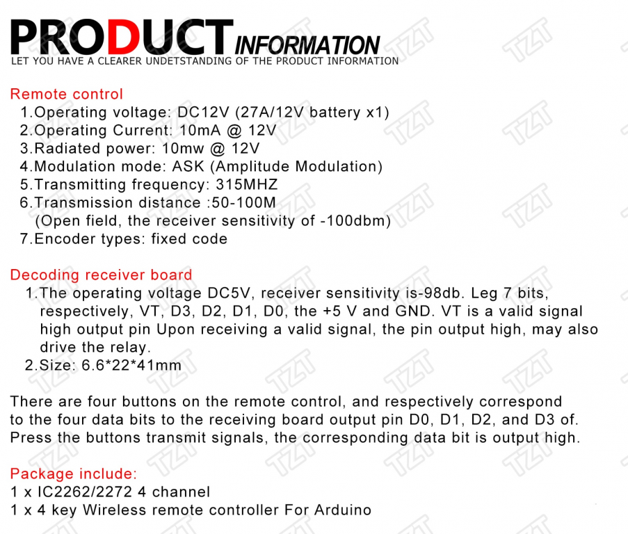 MODULO RICEVITORE 315MHZ CON RADIOCOMANDO 4 CANALI PER ARDUINO